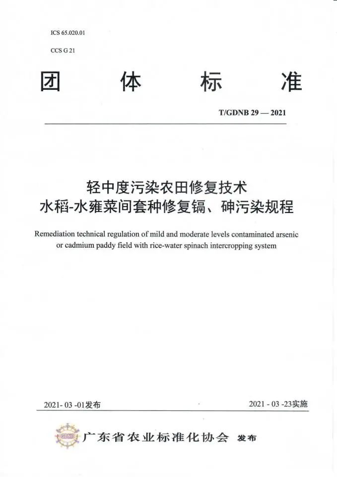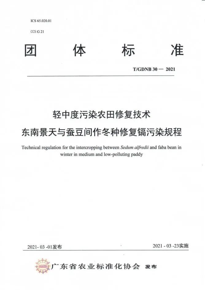 【CONGRATULATION】 喜 報 熱烈祝賀 我司參與制定的標(biāo)準(zhǔn) 頒布實施 我司與華南農(nóng)業(yè)大學(xué)資源環(huán)境學(xué)院、中國科學(xué)院地理科學(xué)與資源研究所等單位合作開展高低累積水稻品種間作修復(fù)鎘污染,水稻-水雍菜間套種修復(fù)鎘、砷污染,東南景天與蠶豆間作冬種修復(fù)鎘污染等研究工作,聯(lián)合起草了《輕中度污染農(nóng)田修復(fù)技術(shù) 高低累積水稻品種間作修復(fù)鎘污染規(guī)程》(T/GDNB28-2021)、《輕中度污染農(nóng)田修復(fù)技術(shù) 水稻-水雍菜間套種修復(fù)鎘、砷污染規(guī)程》(T/GDNB29-2021)、《輕中度污染農(nóng)田修復(fù)技術(shù) 東南景天與蠶豆間作冬種修復(fù)鎘污染規(guī)程》(T/GDNB30-2021),通過廣東省農(nóng)業(yè)標(biāo)準(zhǔn)化協(xié)會組織的標(biāo)準(zhǔn)審定并發(fā)布實施(2021年3月23日實施)。 廣東韶科環(huán)保科技有限公司 20121年4月9日